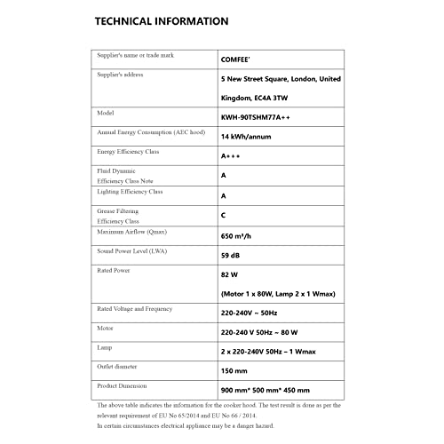 COMFEE’ 90 cm Chimney Hood 90M77 Class A+++ Stainless Steel Extractor Hood