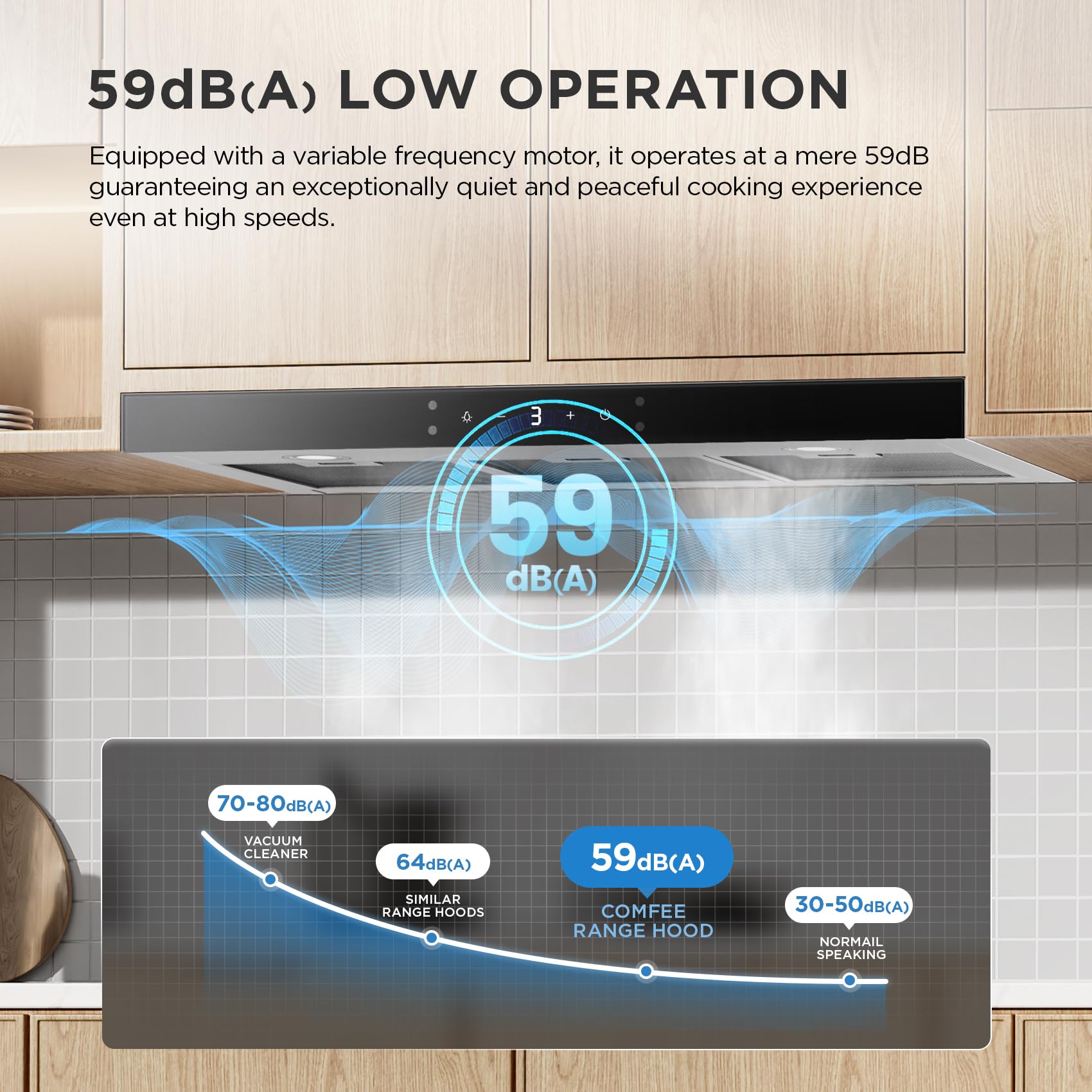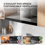 - 【650m³/h Strong Suction】High-end T-shaped Cooker Hood with 4–speed exhaust fan provides up to 650m³/h air suction for your cooking fumes, while keeping the noise low.