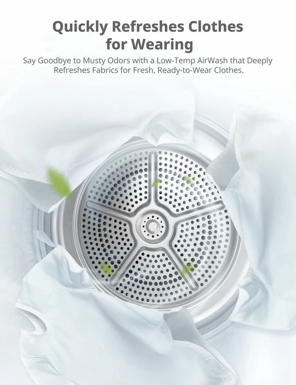 - 【Anti-Crease】The drum rotates in both directions to gently loosen tangled clothes, helping reduce creases and saving you time on ironing