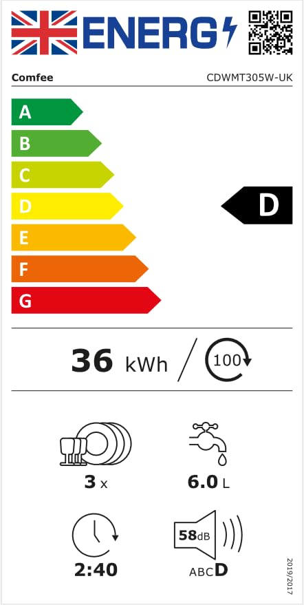 - 【20% Energy Saving Compared to Class F】The COMFEE’ Mini Plus dishwasher has an upgraded energy efficiency rating of class D, which uses 20% less energy than class F when using the ECO program.