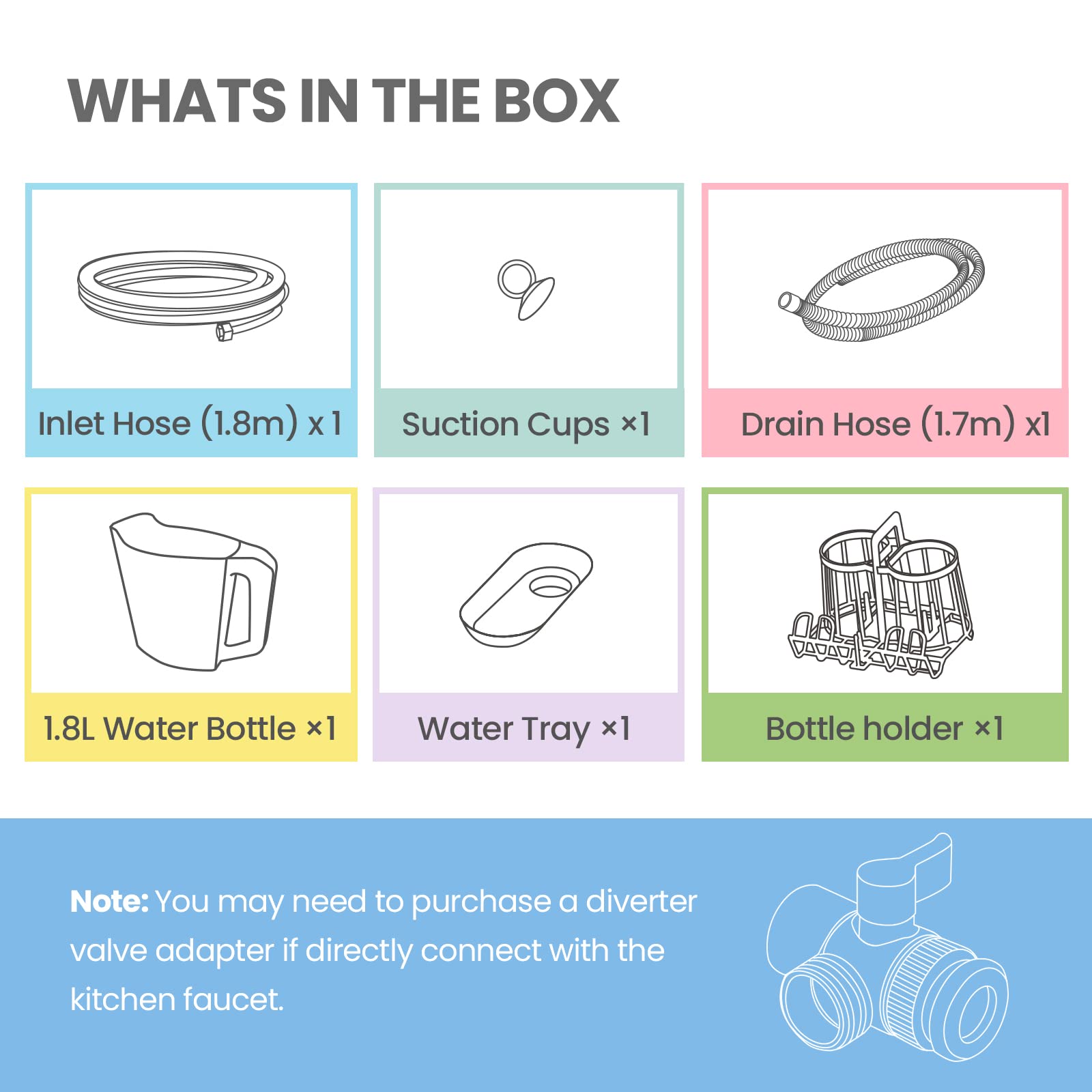 - 【Included Components】The worktop dishwasher comes with a user manual*1, suction cup*1, water bottle*1, drain hose (1.7m)*1, and inlet hose (1.5m)*1 (Only for Male 3/4″”, you may need to purchase a hose thread adapter).