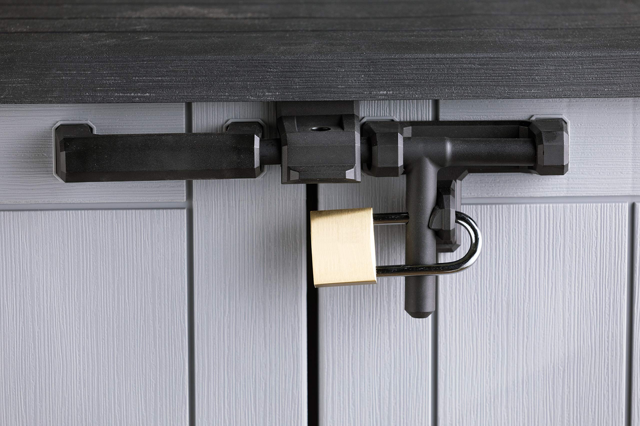 - Ideal outdoor storage solution for garden tools and equipment, BBQ and accessories and x2 120L wheelie bins.