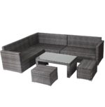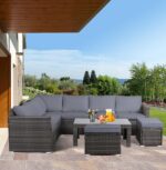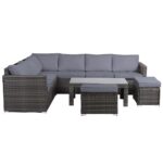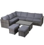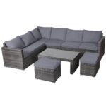 • 【DIMENSIONS】 Our 8-seater Rattan Corner Sofa Set offers generous seating space with overall dimensions of L 243.5 x W 185 x H 72cm. The included coffee table (W 100 x D 53 x H 40.2cm) is perfect for holding drinks and snacks, while the stools (W 52.5 x D 37.5 x H 41.5cm) are ideal for additional seating or lounging.